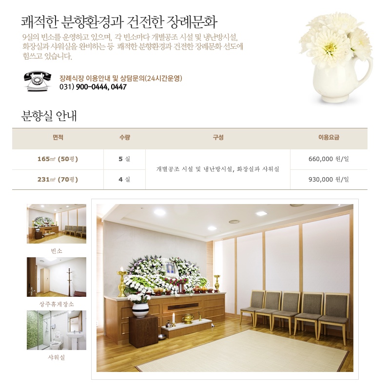 각 빈소마다 개별 공조시설이 마련되어 있습니다